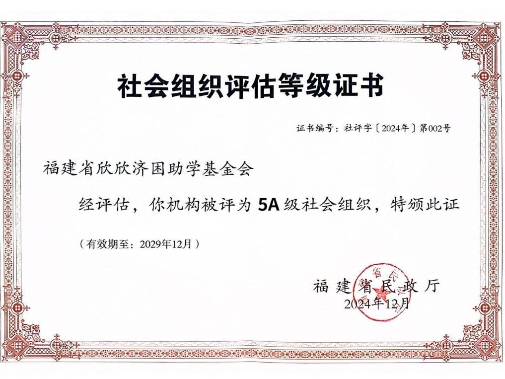 木欣欣以向荣,泉涓涓而始流,代表我们对于公益事业的初心与期许,上善若水,欣欣向荣。福建省欣欣济困助学基金会是经福建省民政厅批准成立的公益基金会(统一社会信用代码:53350000MJB633640L),是民政部门评定的5A级慈善组织机构,具备公益性社会组织捐赠税前扣除资格,业务主管部门为:直接登记。希望通过优质内容-行动机制-互动社区的良性循环圈,让更多的人了解公益,参与公益。