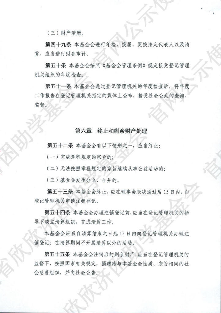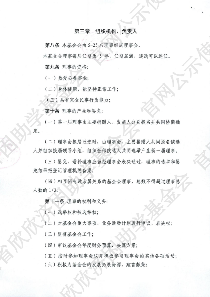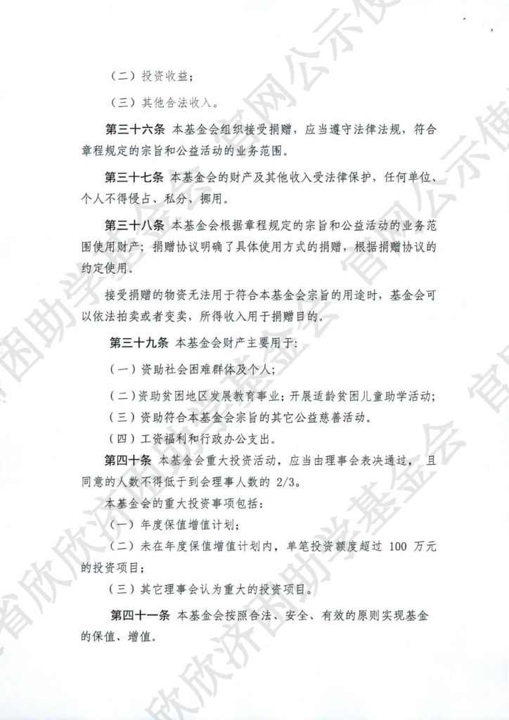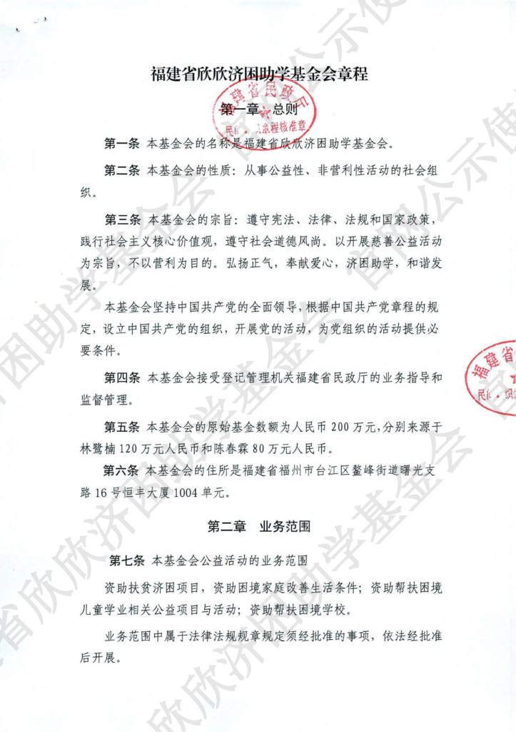 福建省欣欣济困助学基金会章程