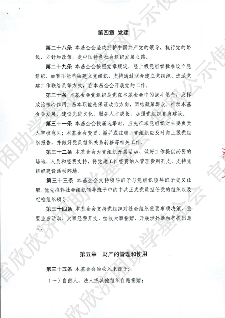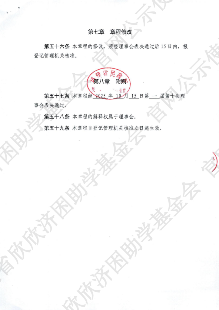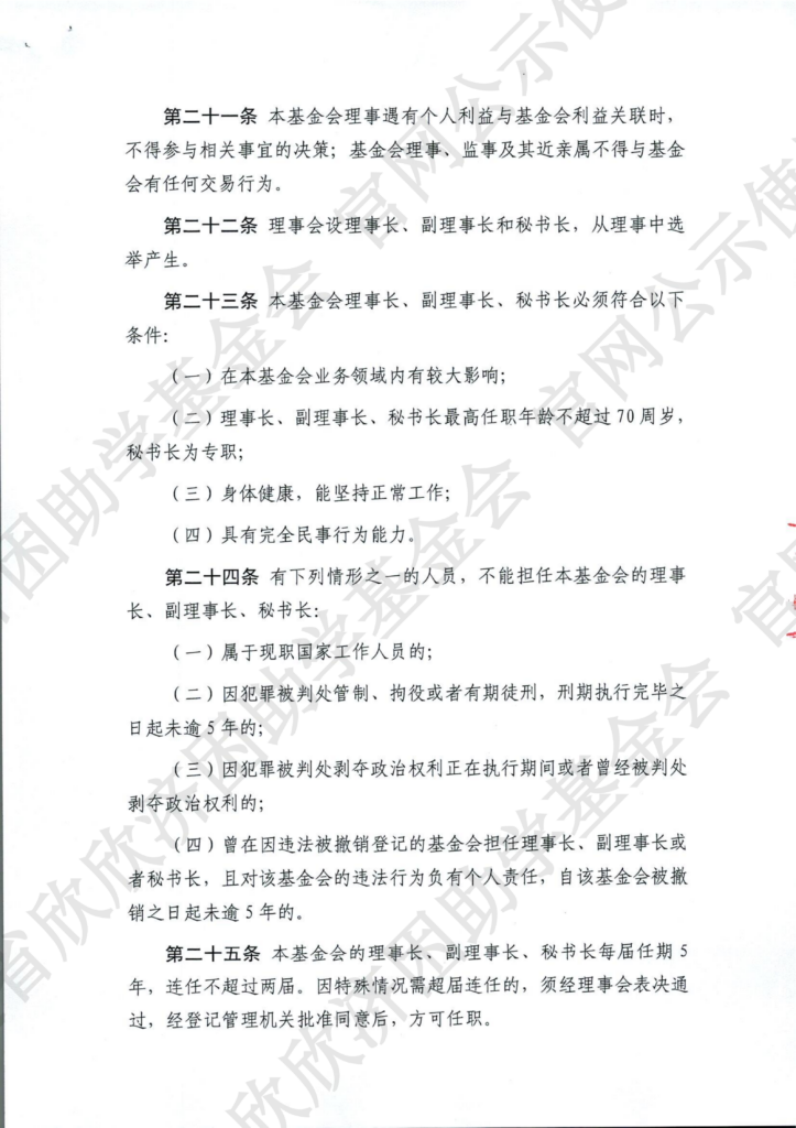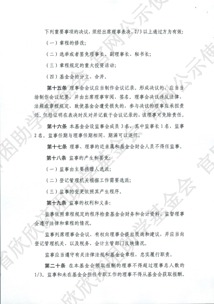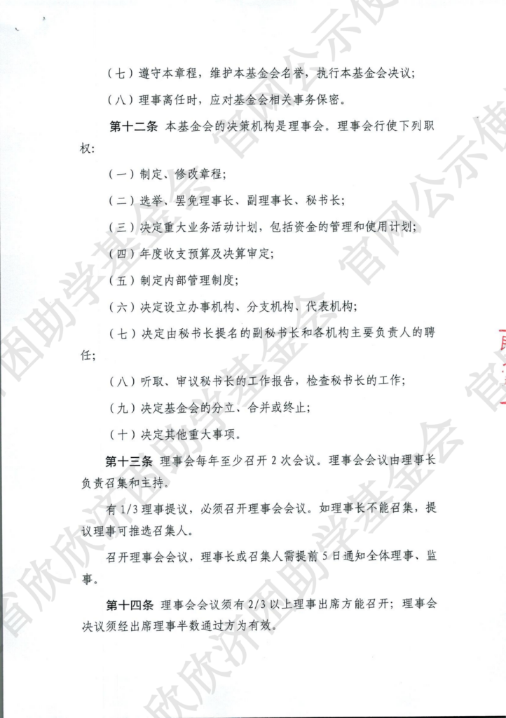 福建省欣欣济困助学基金会章程