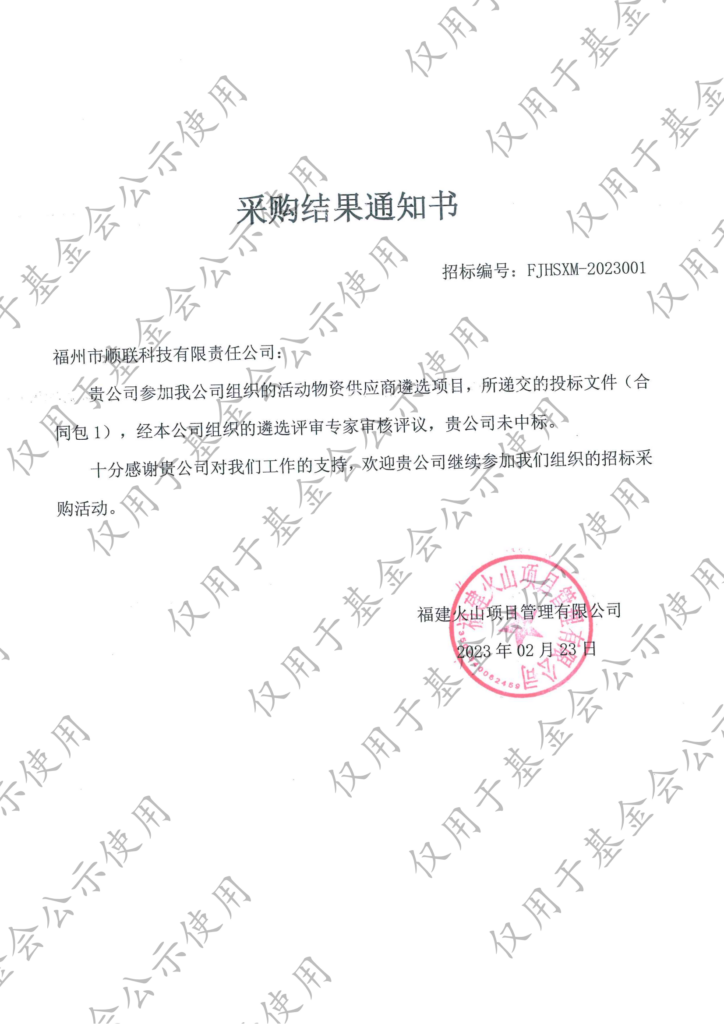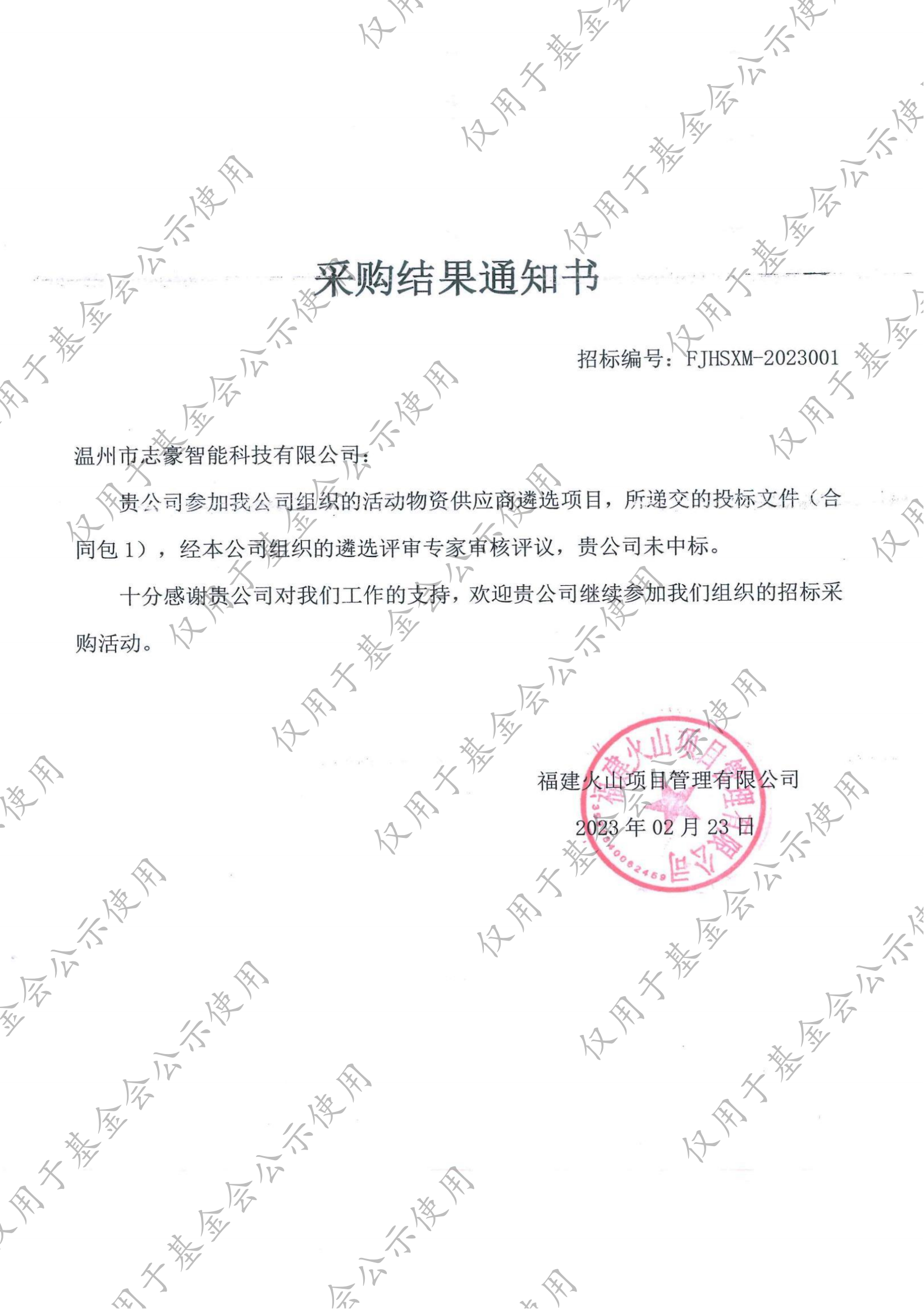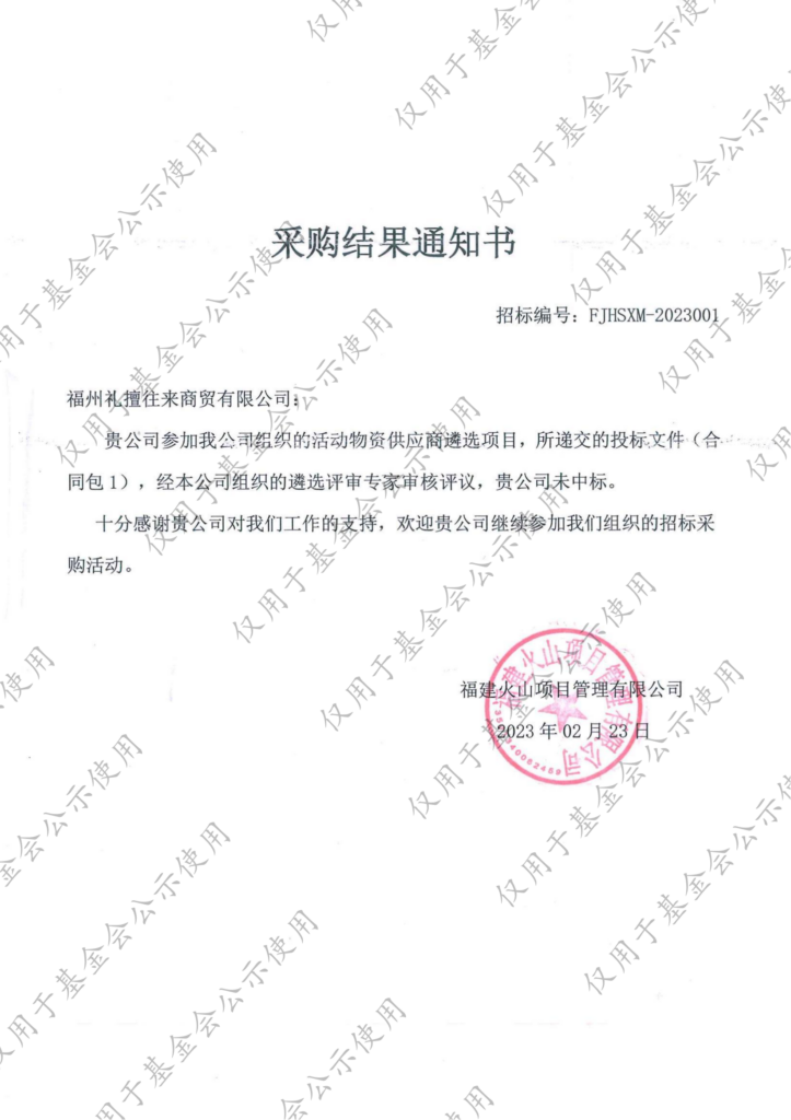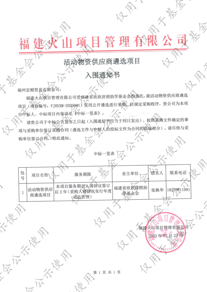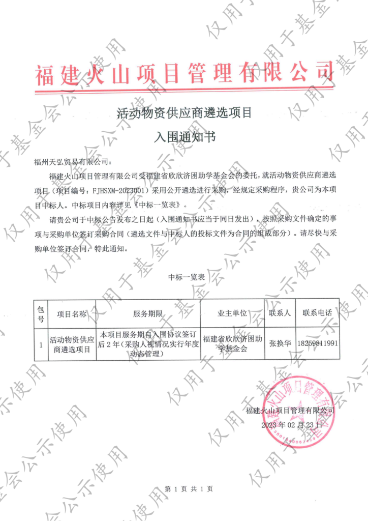 活动物资供应商遴选项目-入围通知书